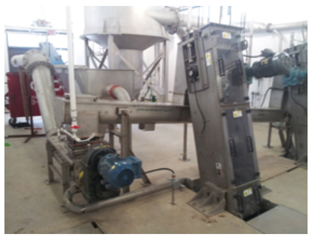 La vis à spirale applique une forte pression à l’intérieur de la zone de compactage, poussant ainsi le matériel dans un tuyau de friction. L’extrémité de l’arbre en spirale est supportée par du matériel compacté. Certains modèles ont également une zone de drainage pour l’extraction de l’eau.