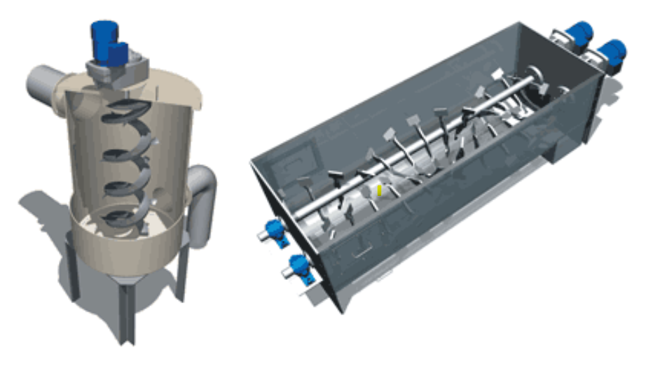 Les mélangeurs à spirale sont idéaux pour les matières sèches ou les matières à forte teneur en liquide.